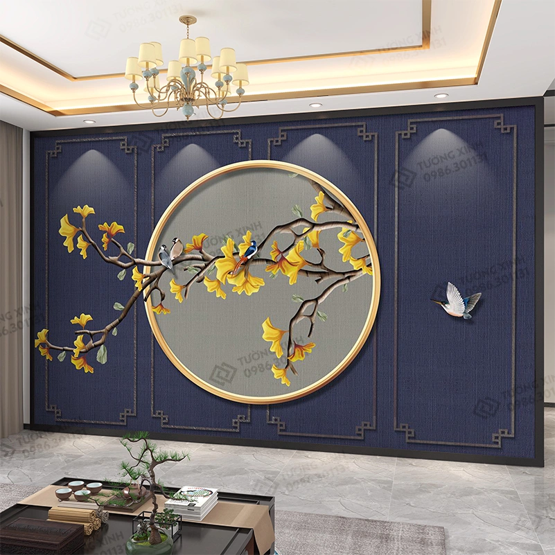 Tranh dán tường 3D phong cách indochine nghệ thuật TDT2496