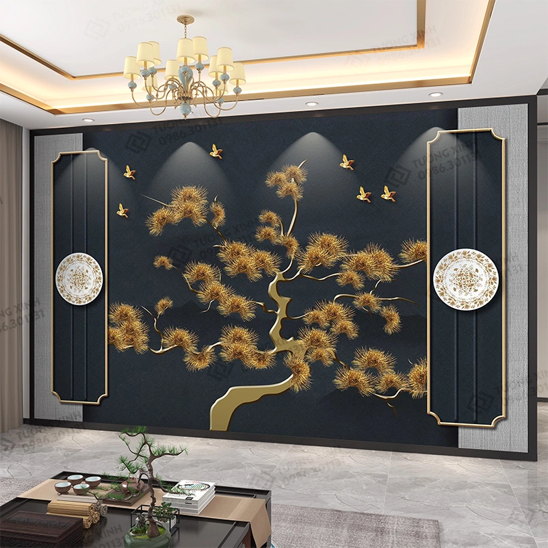 Tranh dán tường 3D phong cách indochine nghệ thuật TDT2499