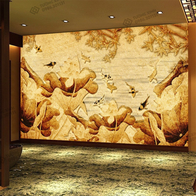 Tranh dán tường 3D trúc chỉ trang trí phòng thờ TDT2639