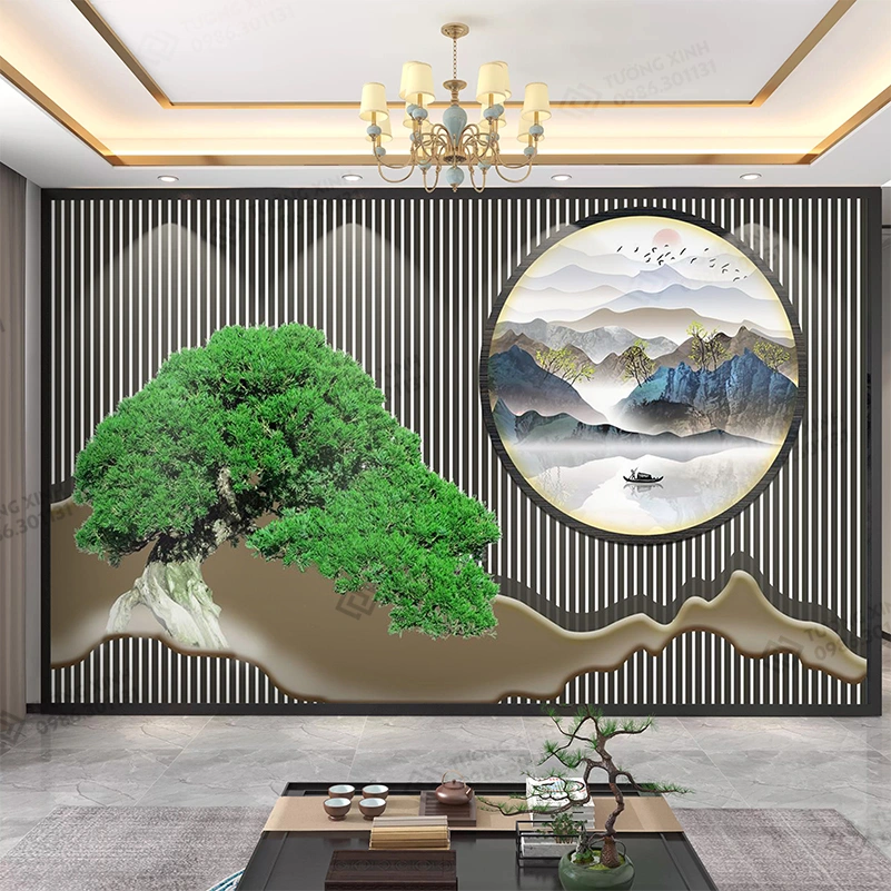 Tranh dán tường lam sóng 3D nghệ thuật hiện đại TDT2512