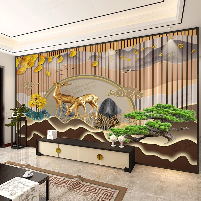 Tranh dán tường lam sóng 3D nghệ thuật hiện đại TDT2538