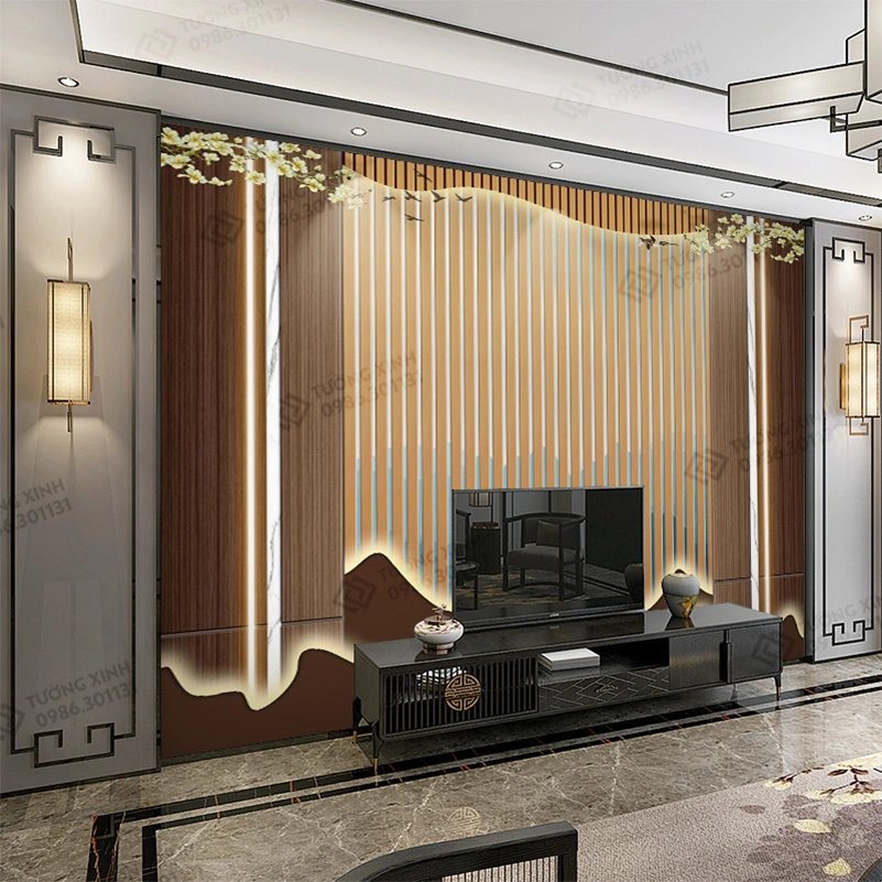 Tranh dán tường lam sóng 3D nghệ thuật hiện đại TDT2578