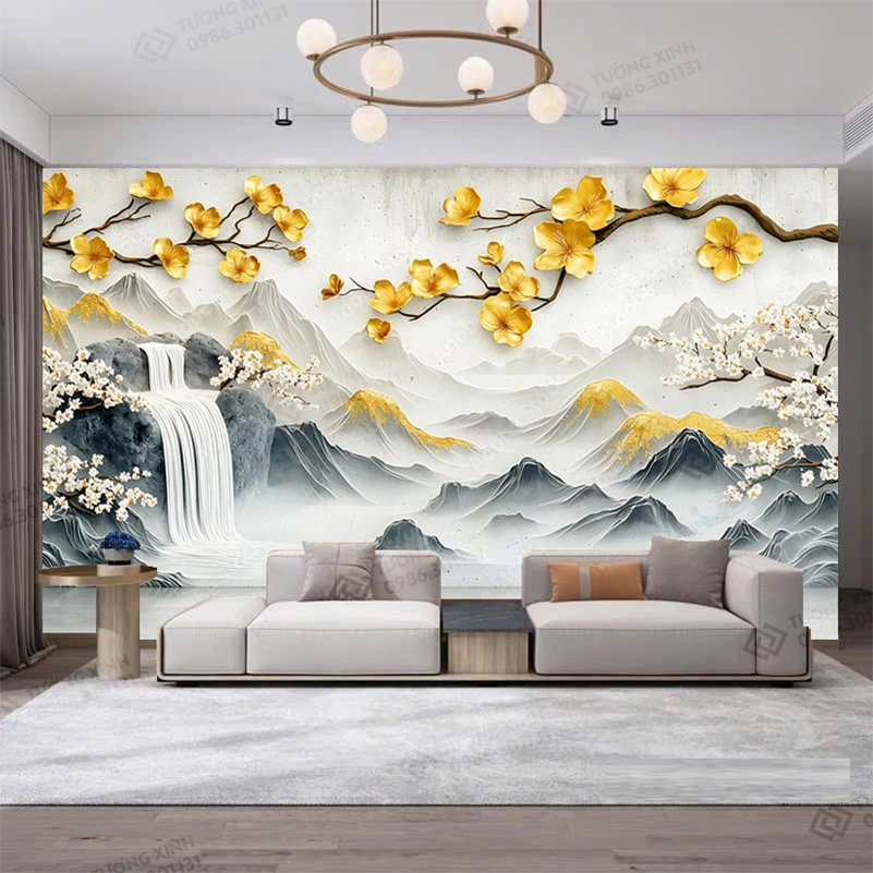 Tranh dán tường phòng khách phong cảnh 3D hiện đại TDT2151