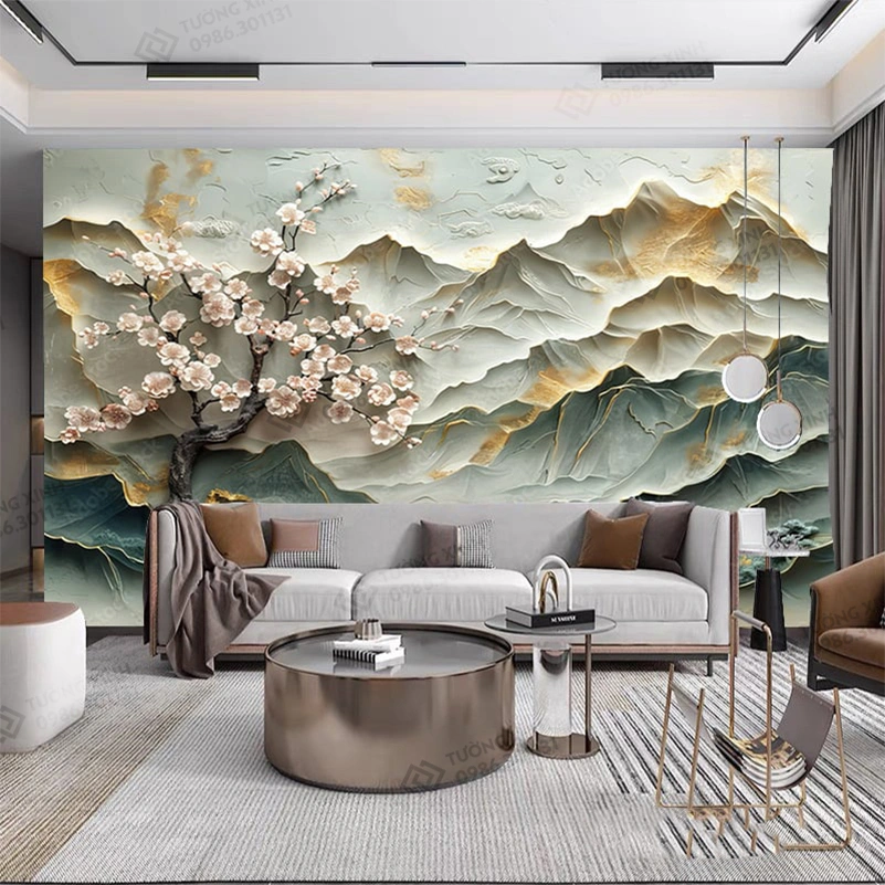 Tranh dán tường phòng khách phong cảnh 3D hiện đại TDT2167