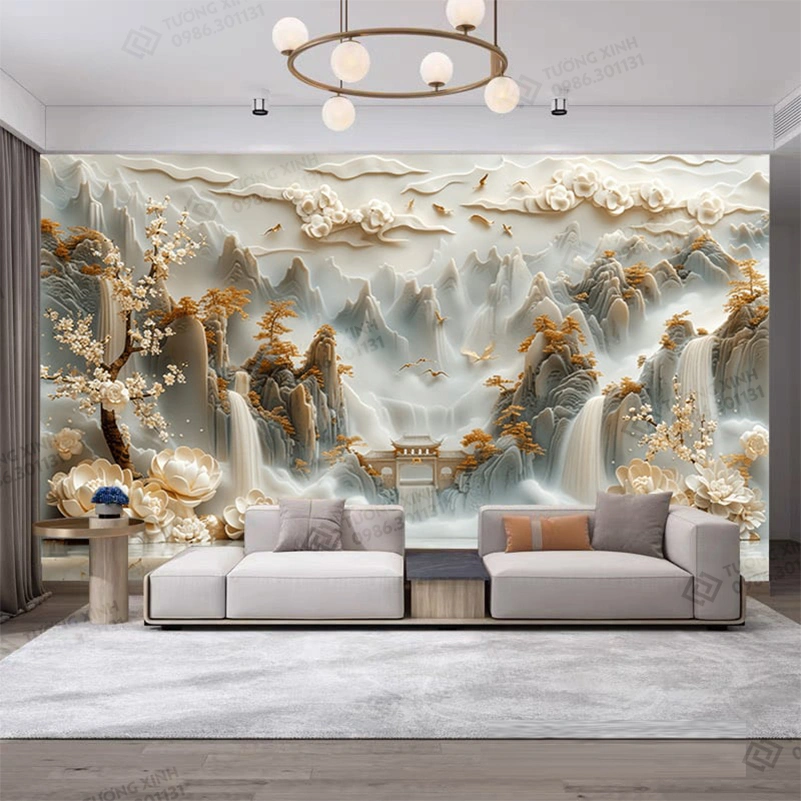 Tranh dán tường phòng khách phong cảnh 3D hiện đại TDT2173