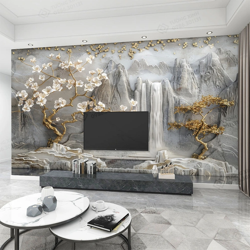 Tranh dán tường phòng khách phong cảnh 3D hiện đại TDT2182