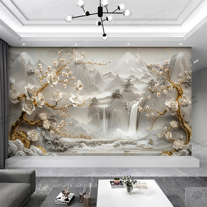 Tranh dán tường phòng khách phong cảnh 3D hiện đại TDT2186