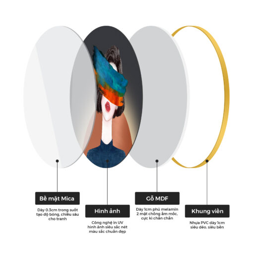 Tranh in ép gỗ là dòng tranh được in lụa sau đó ép trên bề mặt của miếng gỗ. Gỗ dung là loại gỗ MDF cao cấp (gỗ MDF công nghệ Malaysia), được phủ melamine 2 mặt, chống trầy cao, không bị biến dạng, cong vênh, không thấm nước chống ẩm mốc, độ dày từ 12mm. Tranh in ép gỗ được phủ một lớp  cán mịn sần vừa bảo vệ vừa tăng tính thẩm mỹ cho tranh. Ưu điểm của tranh in ép gỗ: